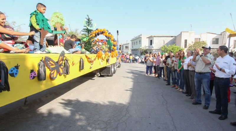 Al encabezar el Desfile de “La Mariposa Monarca” en el que participaron cerca de 500 niños de preescolar y primaria, así como maestros y padres de familia, el munícipe destacó la importancia de cuidar de esta especie que enfrenta riesgos de extinción.