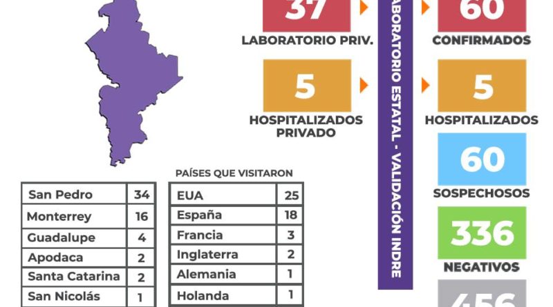 Suma NL 60 casos de coronavirus; podrían llegar a 97