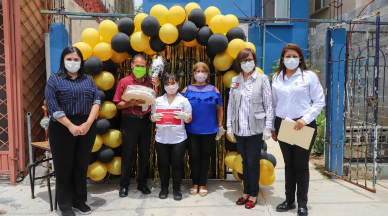 Tras concluir su Taller de Repostería, seis jóvenes con discapacidad fueron reconocidos en su domicilio por la alcaldesa Cristina Díaz, y por el Presidente del DIF Guadalupe, Tomás Montoya, cumpliendo con las medidas sanitarias ante el COVID-19.