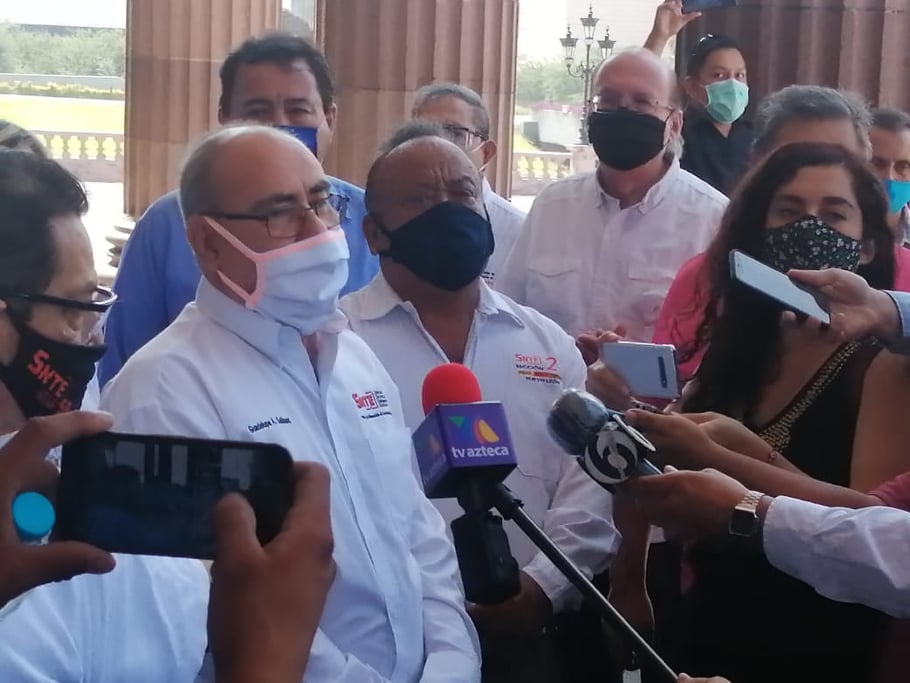 Guadalupe Salinas Garza y Aquiles Cortés Lòpez, dirigentes de ambas secciones magisteriales, entregaron un documento a las autoridades estatales en donde les exigieron el cumplimiento de ofrecimientos como la basificación de cinco mil maestros, el pago de salarios y prestacionss a mil 500 más, entre otras.