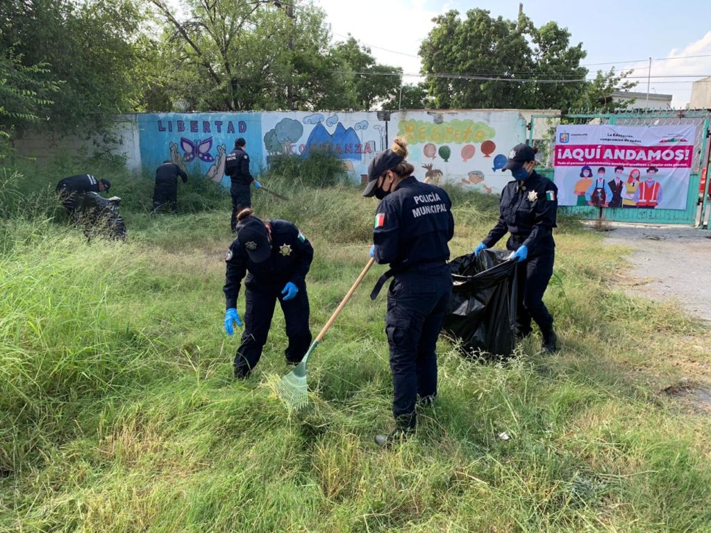 “Aquí estamos todos”, es la actividad de deshierbe y limpieza que la alcaldesa Cristina Díaz arrancó en las escuelas del Municipio de Guadalupe en apoyo a la comunidad y a las autoridades educativas.