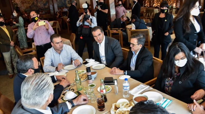 El presidente del PRI estatal, Heriberto Treviño Cantú, se reunió esta tarde con el dirigente nacional del PRD, Jesús Zambrano Grijalva, en un conocido restaurante de Monterrey.