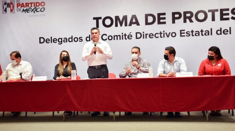 El presidente del Comité Ejecutivo Nacional, Alejandro Moreno Cárdenas, les tomó protesta a los delegados del Comité Directivo Estatal del PRI en Nuevo León, en compañía del dirigente estatal, Heriberto Treviño Cantú.