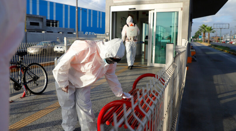 Por las mañanas y en las tardes, el Ejército Sanitizante continuará con la desinfección de hospitales y clínicas; centros comerciales; estaciones de Metro, Transmetro y Ecovía; puentes peatonales; templos, y parabuses.
