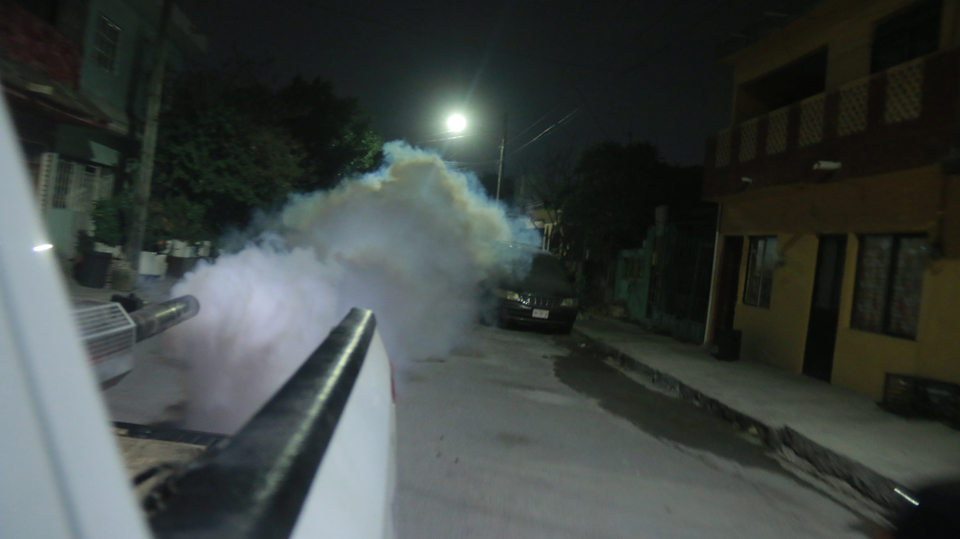 Con fumigaciones frecuentes por las madrugadas, cuando los mosquitos tienen más actividad, el municipio de Escobedo y el Gobierno del Estado refuerzan los trabajos para abatir estos animales y cortar la transmisión de enfermedades como el dengue, el zika y el chikungunya.