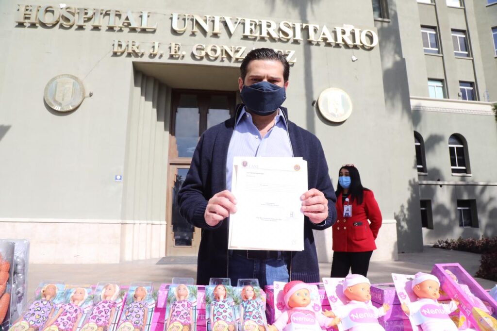La magia de la Navidad llegó al Hospital Universitario con el donativo de 150 juguetes, entre muñecas y superhéroes, que serán distribuidos entre las niñas y niños que pasaron la Nochebuena internados y lejos de casa, cortesía del aspirante a precandidato a la alcaldía de Monterrey, Francisco Cienfuegos, y su esposa, Lucía Todd de Cienfuegos.