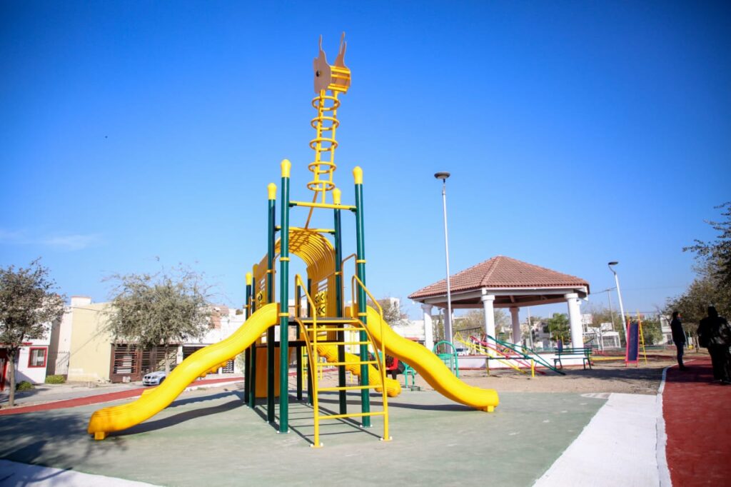 Las obras incluyen la instalación de un juego de metal temático infantil con capacidad para 23 niños, que es una figura tipo jirafa, a la que le dieron el nombre de “Lupita”, cuenta con resbaladillas y una estructura de rapel.