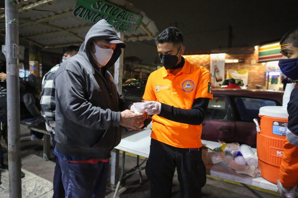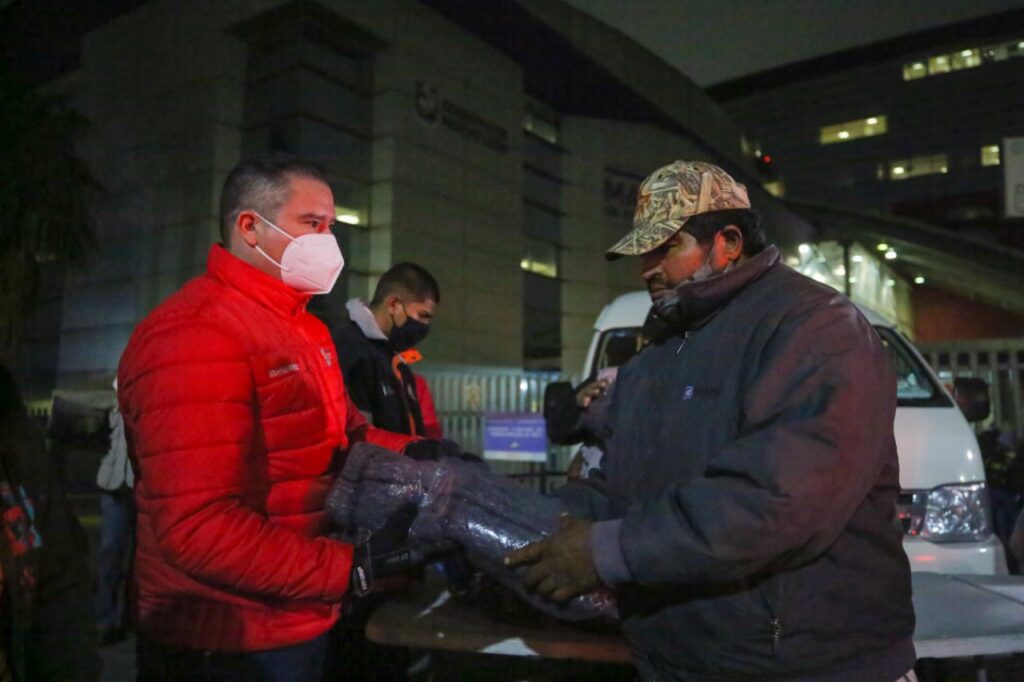El secretario de Bienestar Social, Eduardo Martínez, encabezó el operativo acompañado por elementos de Protección Civil, en el que se entregaron 200 cobertores y chocolate caliente a personas que permanecen afuera del Hospital Covid Número 4 y del Materno Infantil.