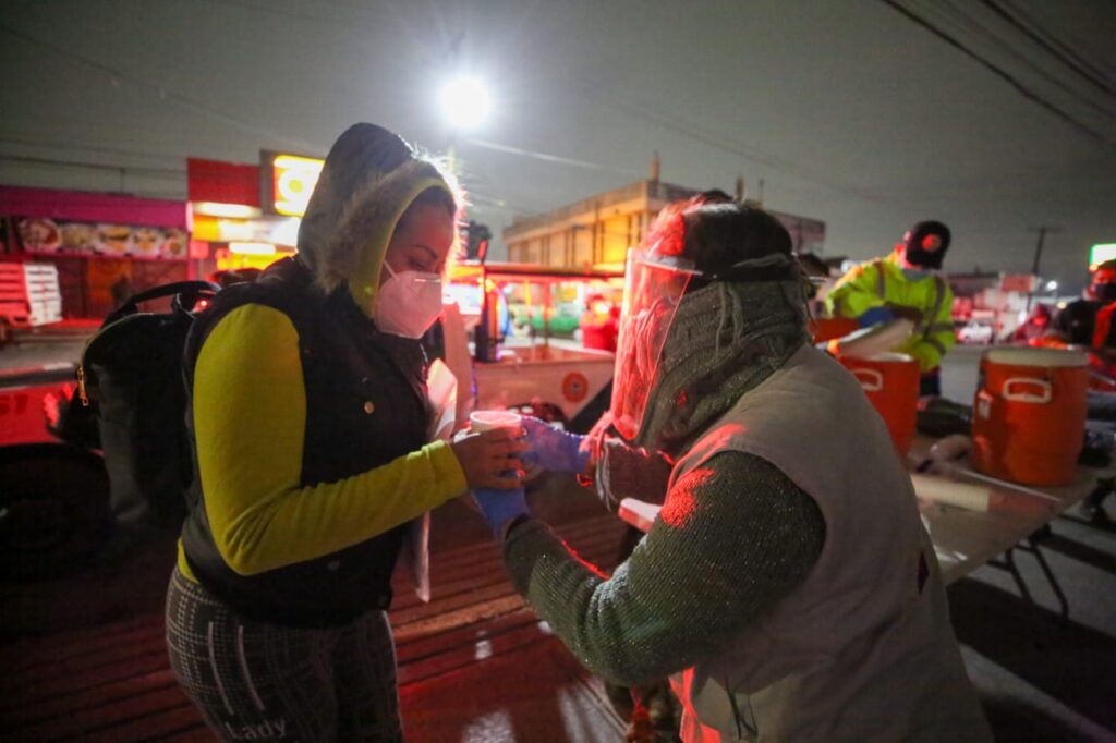 Familiares de pacientes que se encuentran en la Clínica 4 del Seguro Social y del Hospital Materno Infantil recibieron cobertores y bebidas calientes, como parte de un operativo que realizó el Gobierno de Guadalupe desde la noche del domingo.