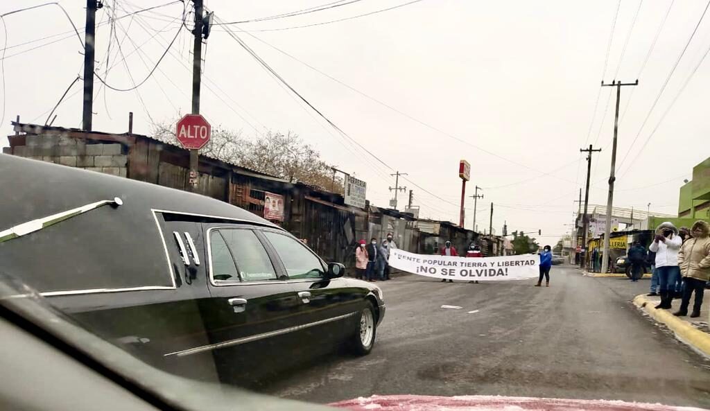 Los restos del también cofundador del Frente Popular Tierra y Libertad, brazo político del Partido del Trabajo, recorrieron en una carroza fúnebre calles de las colonias localizadas en el cerro del Topo Chico en las que vivió y organizó en grupos sociales y gremios a comerciantes, taxistas y mariachis.