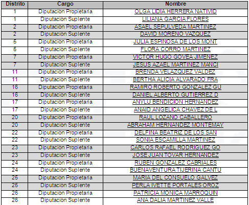 Fórmulas de Diputaciones aprobadas a la coalición JHHNL