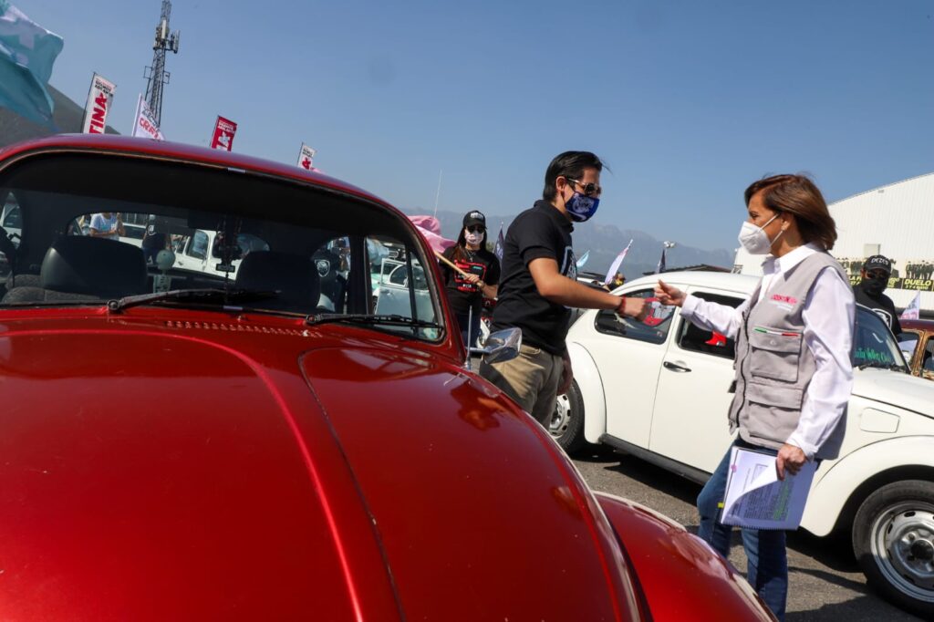 La propuesta que hizo la candidata de la Alianza “Va Fuerte por Nuevo León”, es promover al menos una vez por año, la caravana y exhibición de los “Vochos”, ofreciendo espacios para ellos.