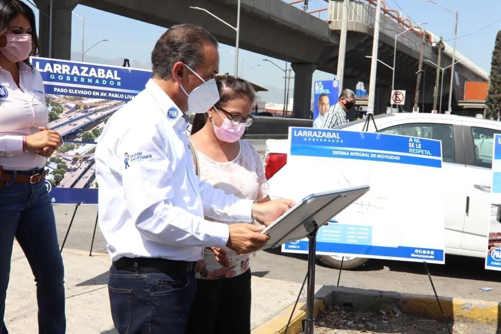 “Vamos a ampliar esta línea del metro, cinco kilómetros rumbo a Juárez, vamos a ir por la avenida Juárez, vamos a dar la vuelta en avenida las Torres, como viene aquí el dibujo, de Juárez, avenida las Torres, Pablo Livas, cinco kilómetros rumbo al municipio de Juárez; al bajar el metro, vamos a hacer un transmetro, con el mismo boleto que van a pagar el metro, van a poder llegar hasta el centro de Juárez; con un transmetro y también haré transmetro en otros puntos, hacia Apodaca y hacia García”, puntualizó Larrazabal.