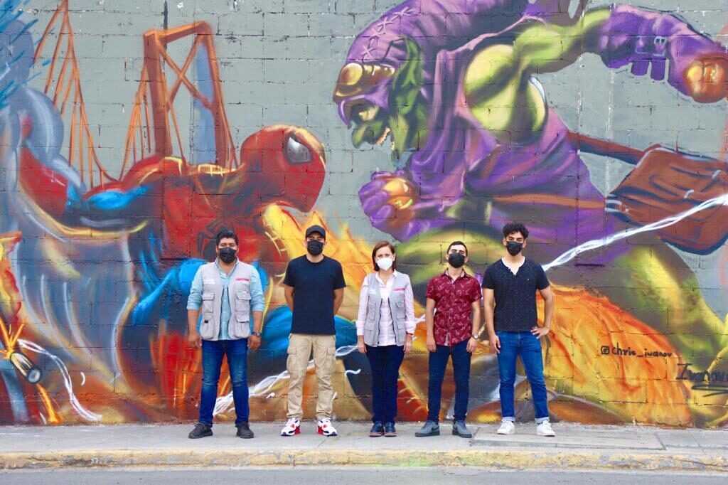 En sus planes para apoyar a jóvenes talentos, Cristina Díaz presentó el plan “CultirizArte”, durante el reconocimiento que le hizo a los artistas urbanos que elaboraron el Mural de los Avenger, en el espacio ubicado en una de las bardas de la Expo Guadalupe.