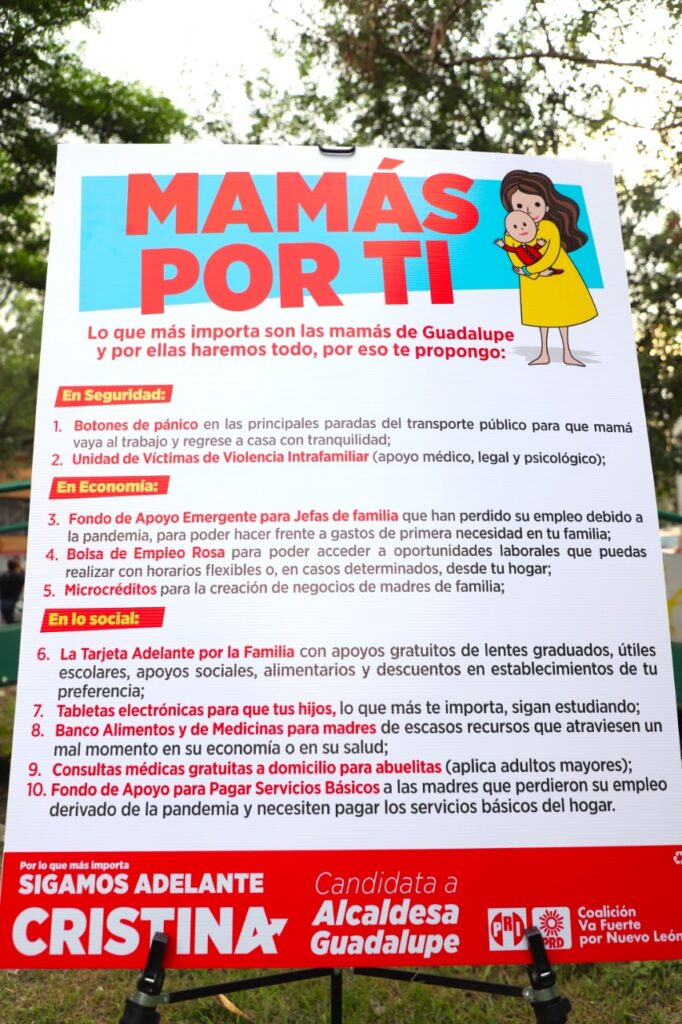 Con el planteamiento “Mamá por ti”, Cristina Díaz, proyecta fortalecer la economía, seguridad y la política social a favor de las mujeres que tienen a su cargo la responsabilidad de un hogar.
