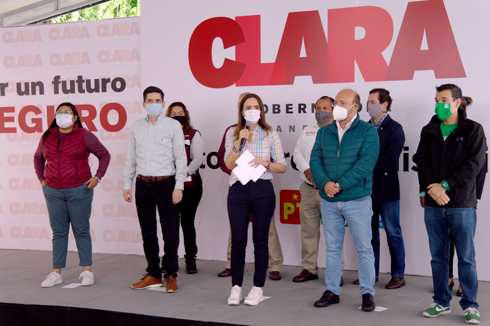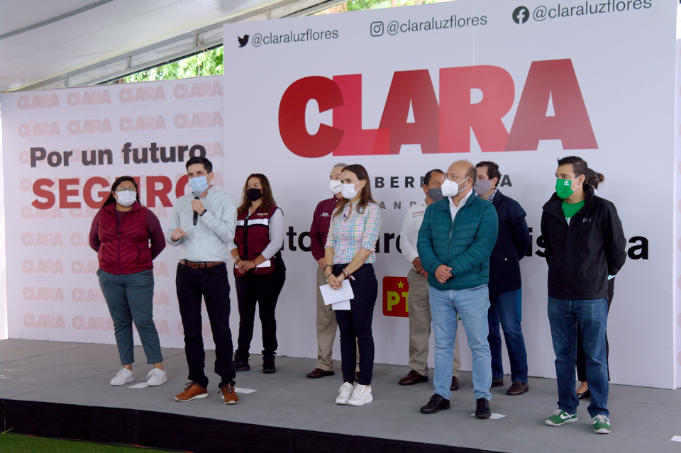 Reunidos en el Comité de Campaña, Clara Luz Flores Carrales, candidata a la Gubernatura y líderes de los partidos Morena, Verde Ecologista de México (PVEM) y Nueva Alianza Nuevo León, anunciaron la designación de Cantú como aspirante a la candidatura por la Alcaldía de Monterrey.
