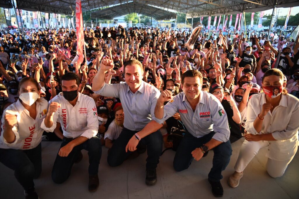 El abanderado tricolor estuvo acompañado por Paco Cienfuegos y los aspirantes a las diputaciones: federal, Marcela Guerra Castillo y locales, Ivonne Álvarez y Ricardo Canavati.
