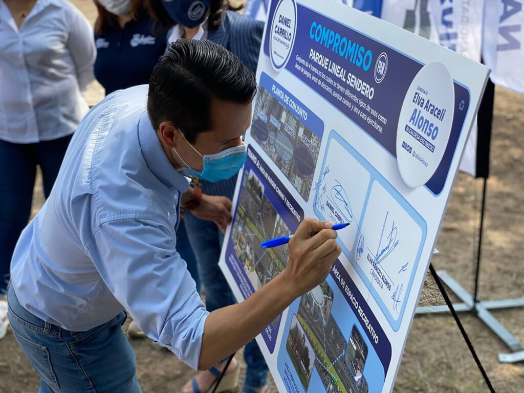 Los candidatos del PAN a las alcaldías de San Nicolás y General Escobedo, Daniel Carrillo Martínez y la Dra. Elva Araceli Alonso González, respectivamente, firmaron un compromiso de colaboración para trabajar en la construcción del Parque Lineal Sendero.