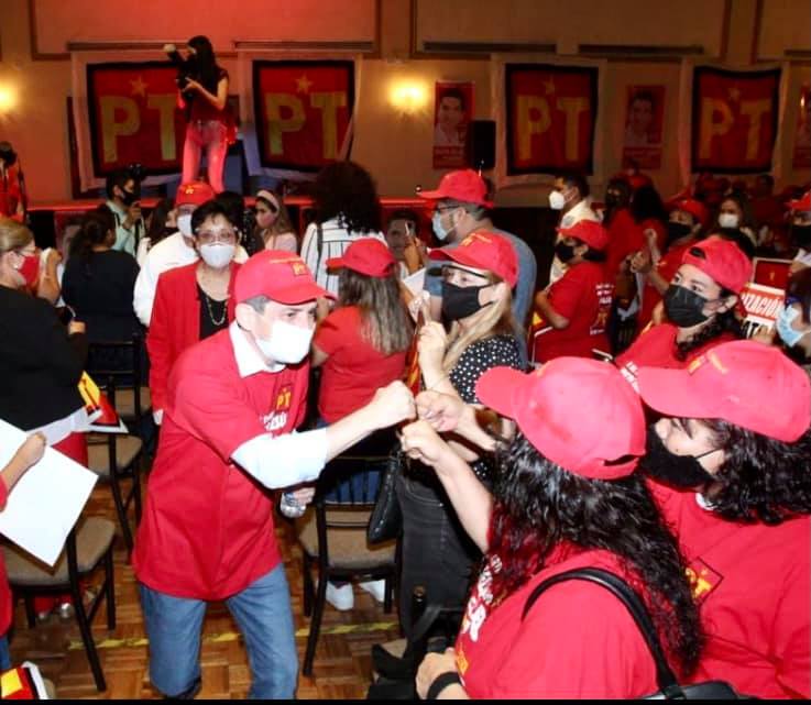 Los diputados del PT, Lupita Rodríguez y Asael Sepúlveda, acompañaron a Cantú Rodríguez en un mitin realizado en el Club de Leones Gonzalitos con los protocolos anti-COVID.