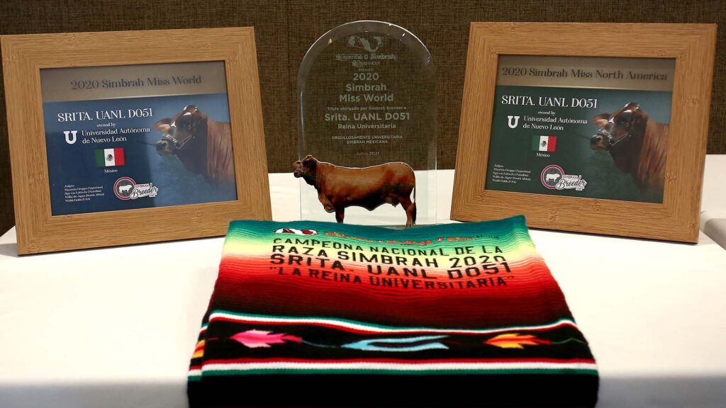 La vaquilla recibió el Premio 2020 Simbrah Miss World, y Miss North America 2020. En esta edición participaron mil 850 ejemplares, provenientes de 85 distintos países y 16 razas calificadas por cinco jueces de diferentes partes del mundo.
