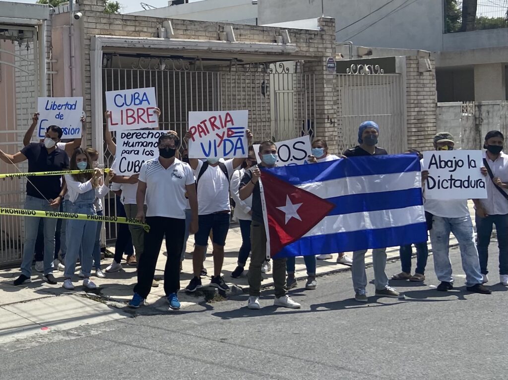 Representantes del Comité Latinoamericano por la Democracia y otras asociaciones civiles clausuraron en forma simbólica las oficinas del Consulado de Cuba en Monterrey, en protesta por los abusos cometidos por el régimen de ese país en contra de ciudadanos cubanos durante las protestas registradas en días recientes.