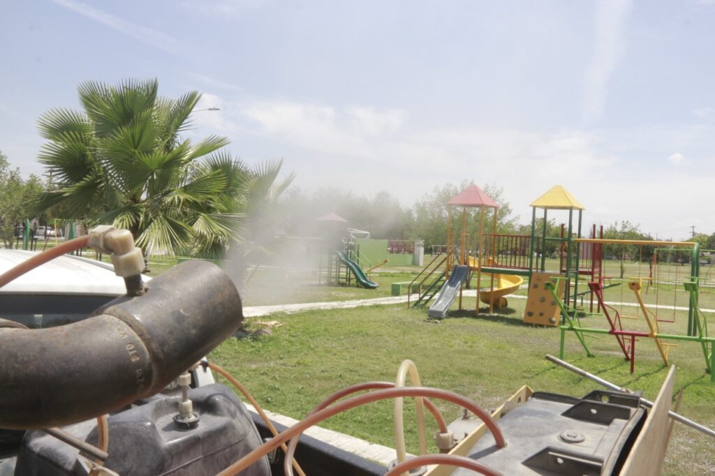 Fumigan y deshierban plazas para cuidado y salud familiar