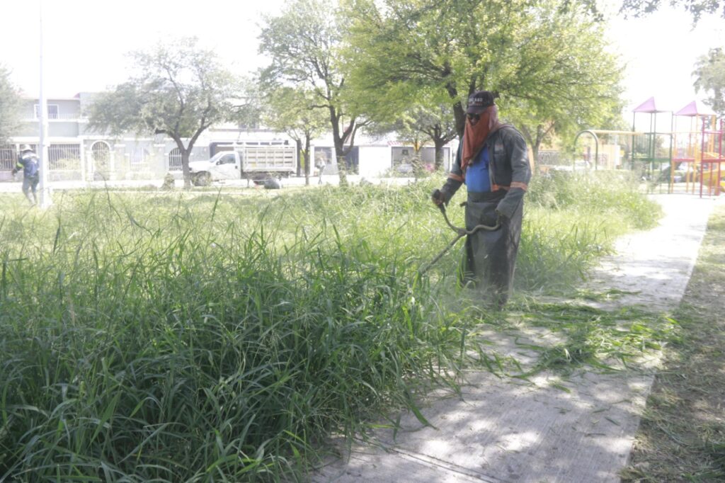 Personal de la Secretaría de Servicios Públicos, en coordinación con la Secretaría de Desarrollo Social a través de la Dirección de Salud, retiró basura, realizó el deshierbe de camellones y plazas públicas.