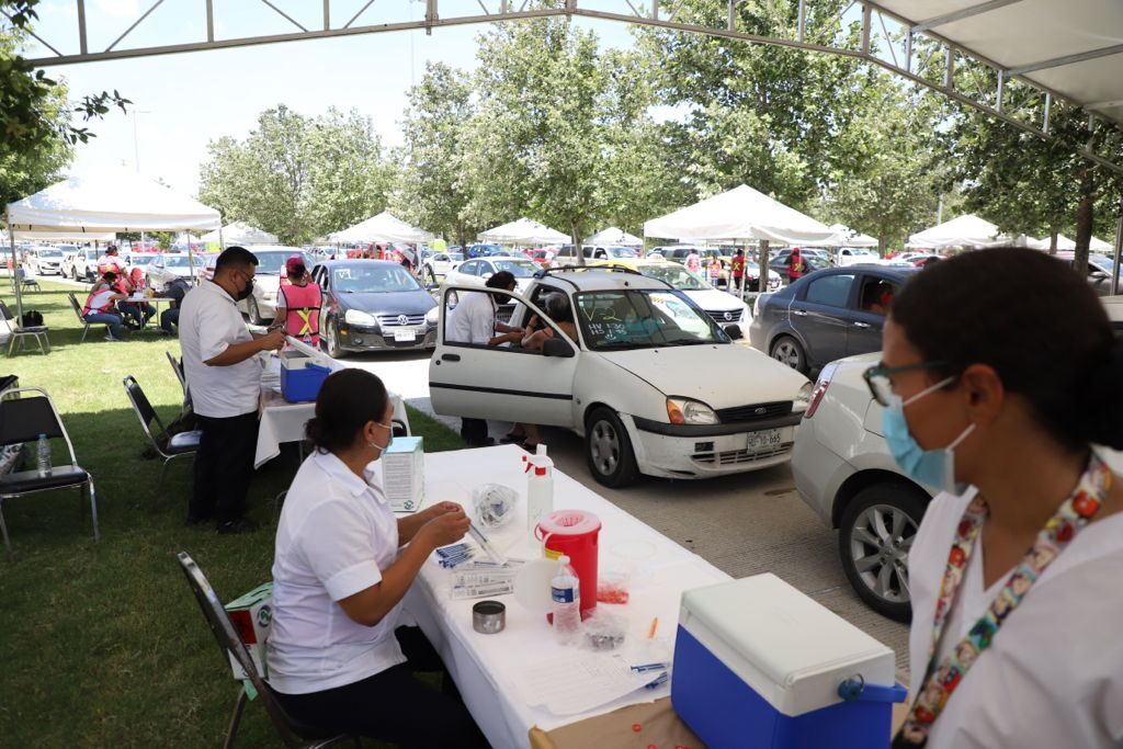 La vacuna Sinovac fue aplicada por la Brigada Correcaminos en los dos Macro Centros, definidos por el Gobierno Federal en la Expo Guadalupe y en el Estadio BBVA, en su modalidad híbrida (peatonal y drive thru), destacó la Presidenta Municipal.