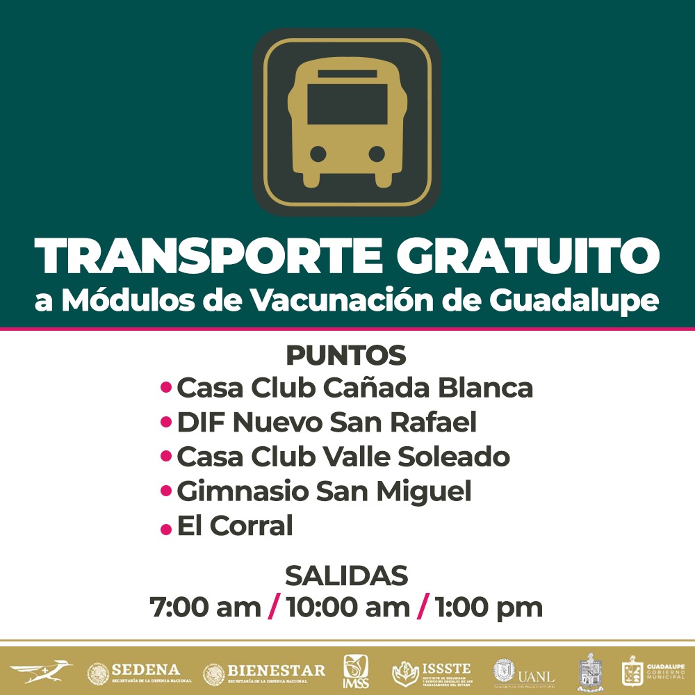 La administración municipal coadyuvará con los gobiernos federal y estatal en la logística, y los módulos definidos por la Secretaría de Bienestar federal son el Estadio BBVA, en modalidad Drive Thru y peatonal, donde el acceso será por la puerta 9; y habrá dos módulos en la Expo Guadalupe, uno en la nave principal, y otro en el Jardín Cerveza.