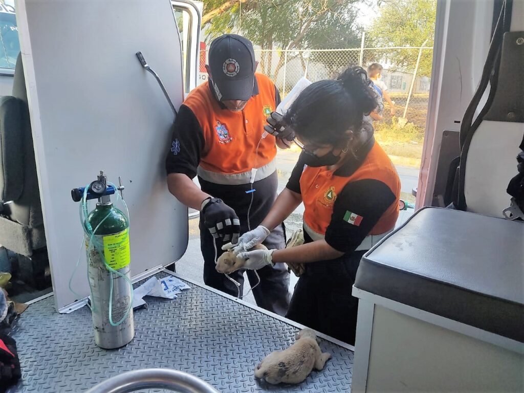 Luego de que se lograron poner a salvo a los tres perritos, por parte de los paramédicos se les dio atención médica y se les suministró oxígeno para contrarestar los efectos del humo y que se recuperaran.
