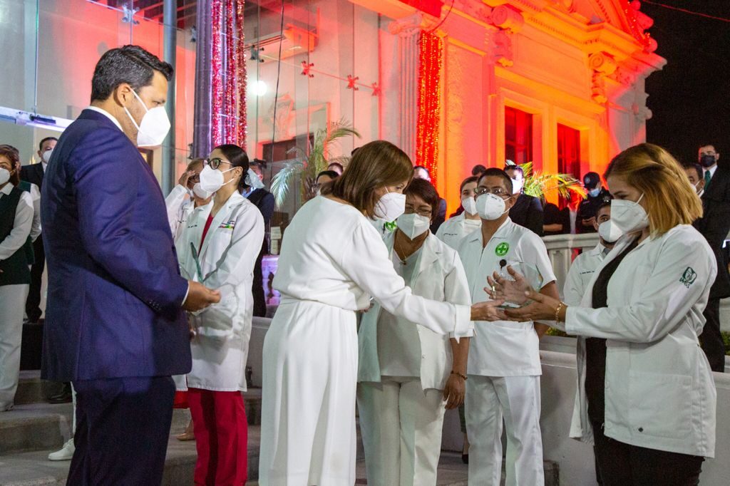 En la ceremonia, la edil reconoció la destacada labor de médicos y enfermeras para brindar atención a las familias que han requerido ayuda durante los más de 18 meses de emergencia sanitaria.