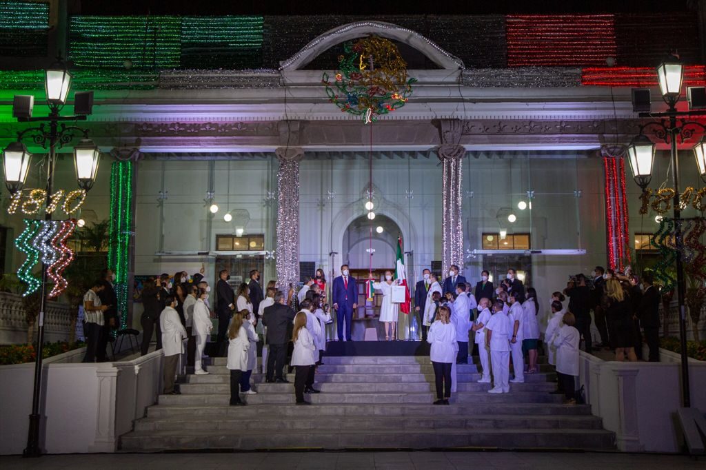 Acompañada por personal médico y de enfermería de clínicas y hospitales de Guadalupe, la alcaldesa Cristina Díaz encabezó la ceremonia virtual por el 211 Aniversario del Grito de Independencia de México.