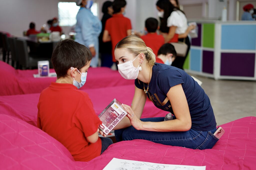 Pantallas de televisión, juguetes, juegos didácticos y libros fueron algunos de los primeros apoyos que entregó a este espacio del DIF Nuevo León que tiene en resguardo a niñas, niños y adolescentes en situación de maltrato y abandono.