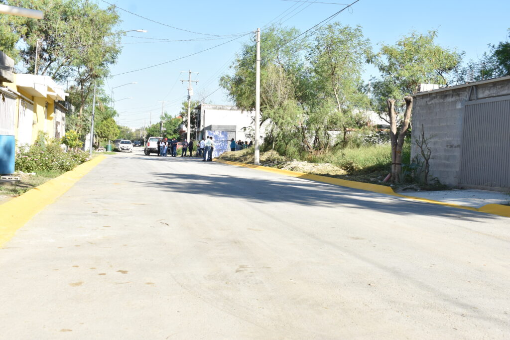 Pavimentan calles en La Escondida; anuncia Paco Treviño más obras