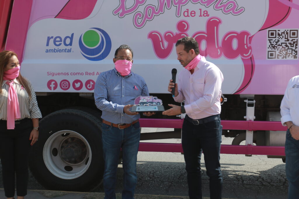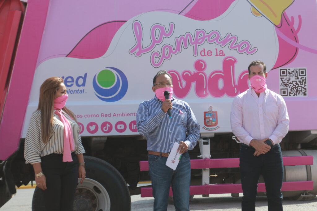 Con una unidad recolectora de basura color rosa, el Municipio de Escobedo, en conjunto con la empresa Red Ambiental, arrancó la campaña “La Campana de la Vida” para concientizar a la comunidad sobre el cáncer de mama.