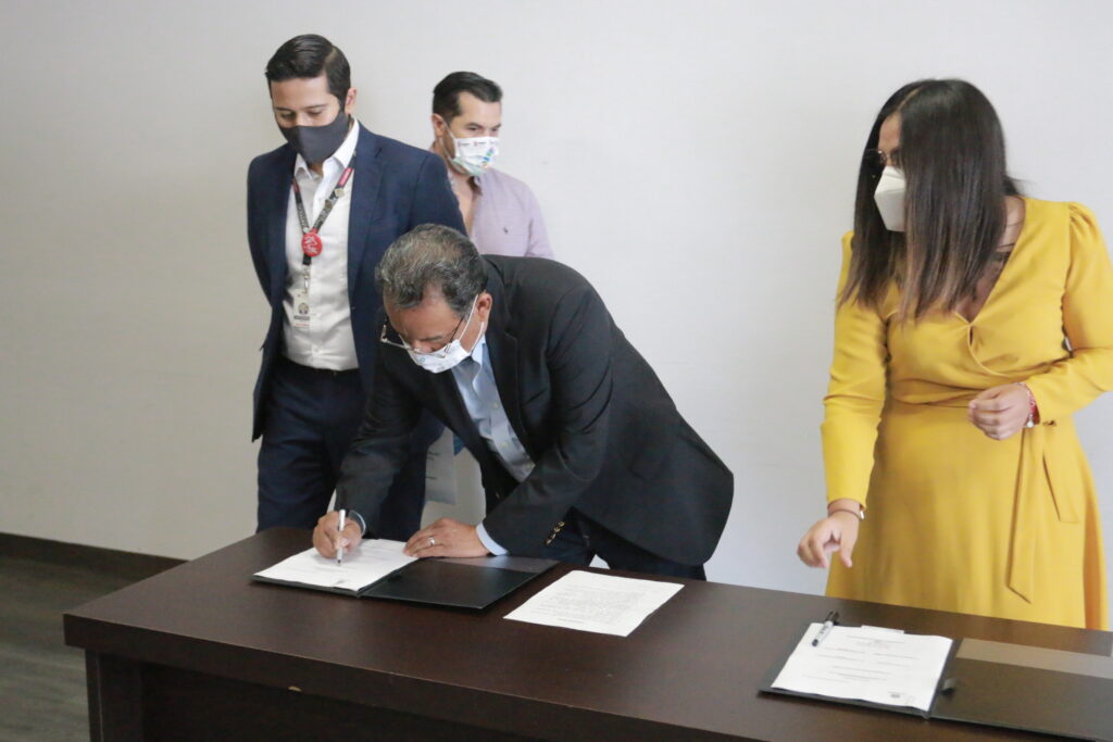 El documento fue signado por Mijes Llovera, Daniel Flores, Titular de la Secretaría de Bienestar y representantes de las instituciones educativas públicas y privadas.