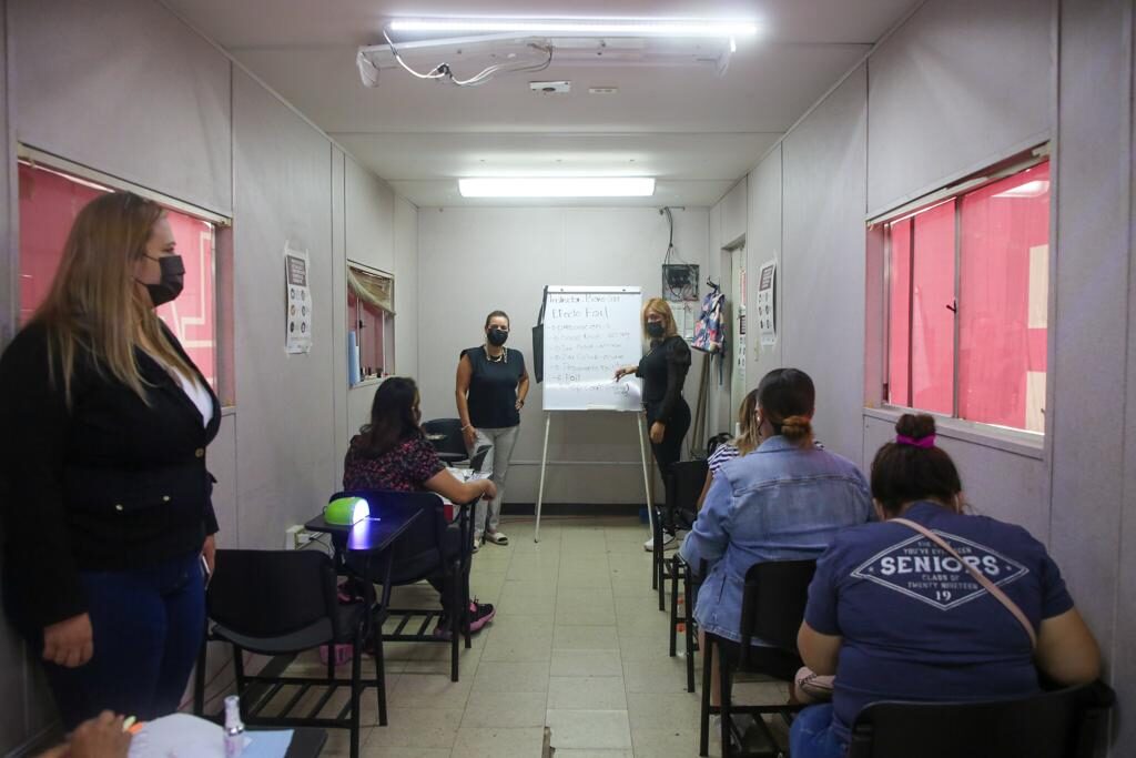 Las clases las brinda una instructora de los talleres productivos del Instituto Municipal de la Mujer de Guadalupe, son validados por el Instituto Capacitador de la Cámara Mexicana de la Industria de la Construcción (ICIC), organismo empresarial que además apoyó al municipio con el aula móvil.