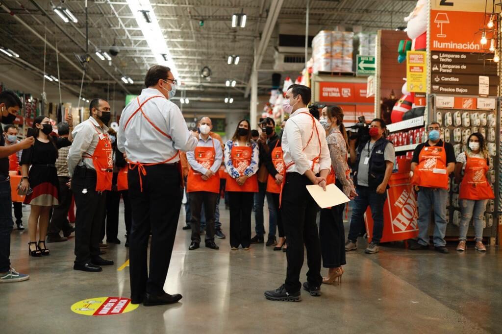 José A. Rodríguez Garza, presidente y director General The Home Depot México, se encargó de dar la bienvenida a la comitiva oficial en la que se encontraban también Betsabé Rocha Nieto, secretaria de Desarrollo Económico, y Ana Luna Serrano, secretaria de Desarrollo Social.