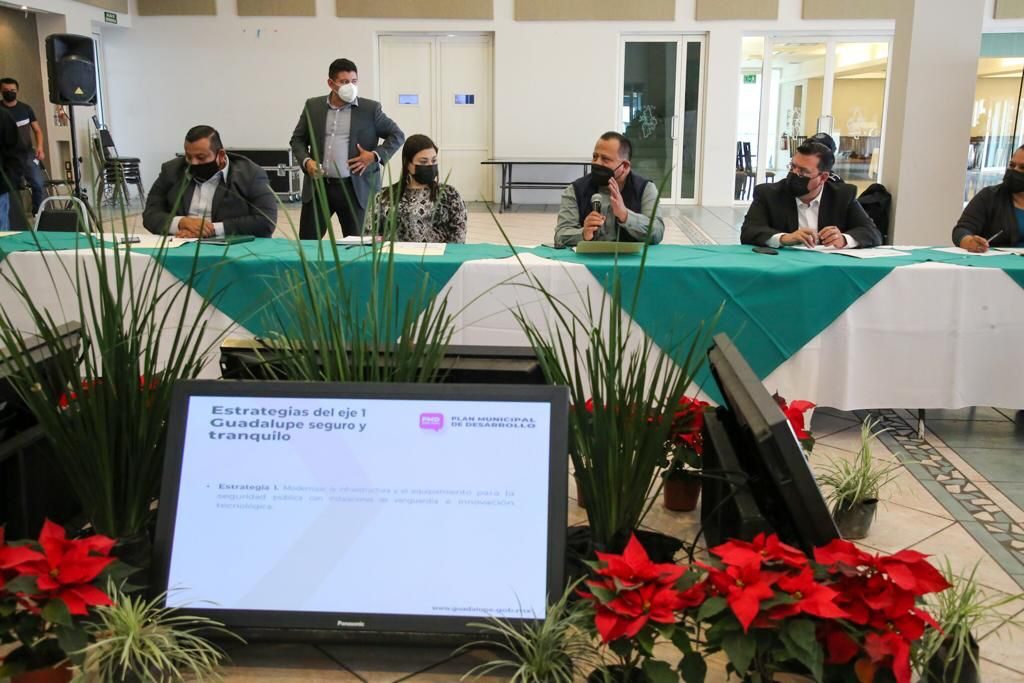Durante la mesa de trabajo “Guadalupe Seguro y Tranquilo”, para el Plan Municipal de Desarrollo, se recibieron propuestas de organizaciones y de la sociedad civil, que trabajaron de la mano con la Secretaría de Seguridad Pública y Protección Ciudadana, el área de Prevención Social y el Instituto Municipal de Desarrollo Policial.