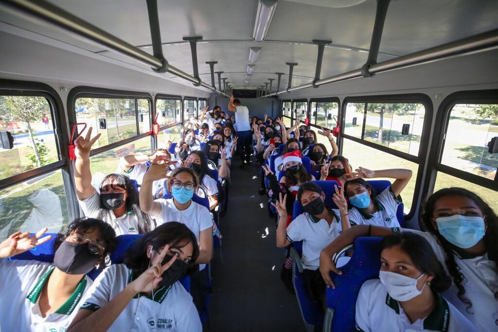 El Municipio amplió el transporte hacia los módulos de vacunación, acudiendo a instituciones educativas, como los Conalep “Raúl Rangel Frías” y “Víctor Gómez Garza”, Cetis101, Cebetis 74, Universidad EDEC y las Preparatorias No. 8 y 22 de la UANL, para trasladar a los alumnos a recibir su primera dosis.