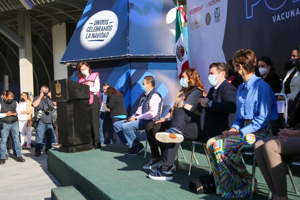 Debido a la amenaza por la nueva variante Omicron, Cristina Díaz señaló la necesidad de vacunar al mayor número de personas, agradeciendo al personal médico y de enfermería del IMSS, ISSSTE, Secretaría de la Defensa Nacional, Hospital Universitario y de la Secretaría de Salud en el Estado por el esfuerzo realizado durante todos estos meses.