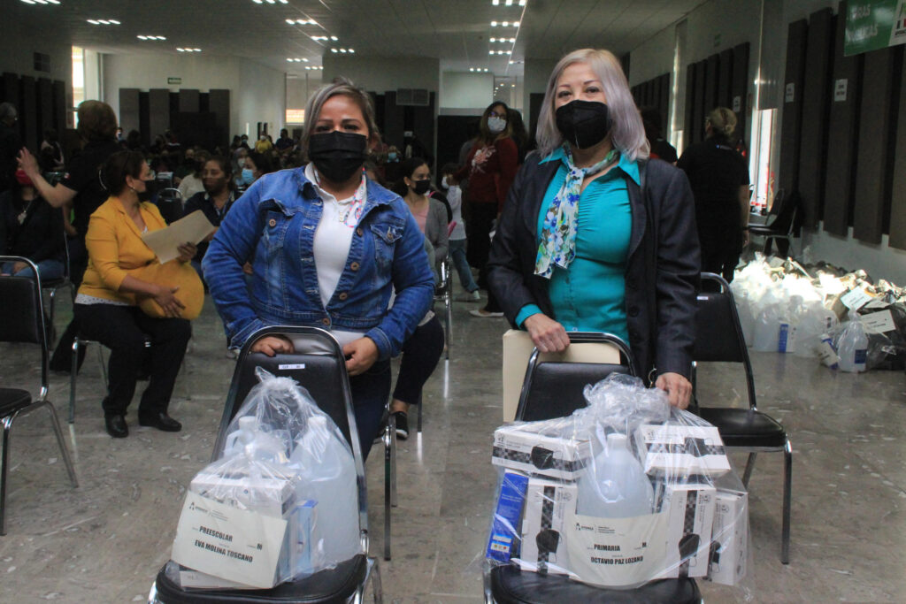 Al evento acudieron directivos y representantes de las 376 escuelas que conforman el sistema educativo público, para recibir el material de apoyo. En total se entregaron 80 mil cubrebocas, 700 termómetros y 800 galones de gel, que se distribuyeron entre los planteles del Municipio.