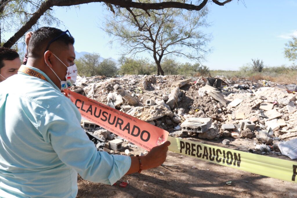 El Gobierno de Escobedo clausuró un predio, ubicado en la colonia Arco Vial, en donde se realizaba el depósito ilegal de desechos y basura.