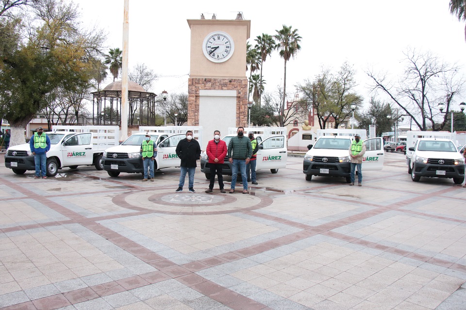 Para beneficiar a un mayor número de habitantes en sus colonias, el alcalde Francisco Treviño Cantú reforzó a la Secretaría de Servicios Públicos con cinco camionetas Estaquitas, y anunció que pronto llegarán más vehículos de trabajo para esta dependencia.