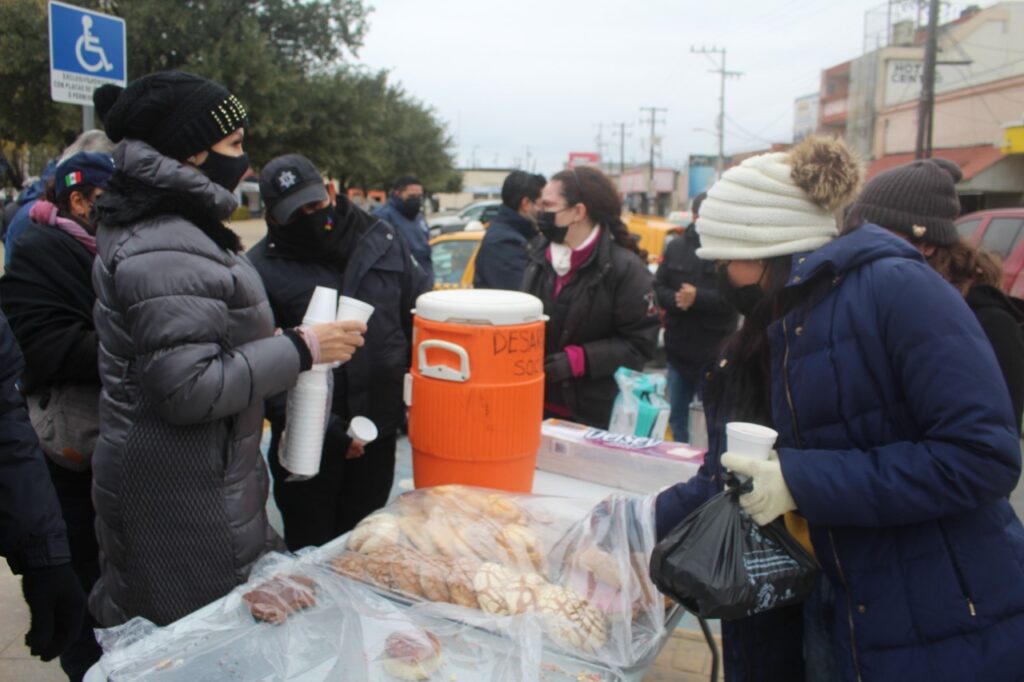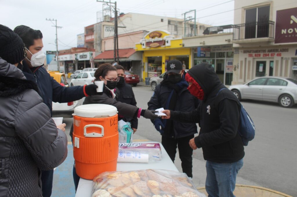 Reparten policías de Cadereyta pan y chocolate para mitigar frío