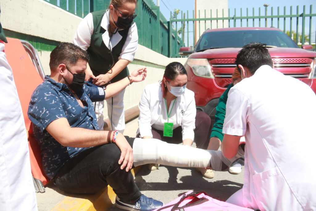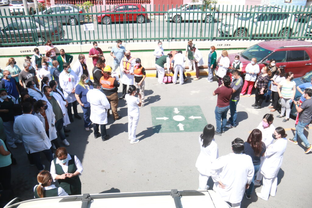 Fue a las 11:00 horas de este jueves que se evacuó de la clínica al personal médico y administrativo, así como derechohabientes. Incluso, se simuló la atención de heridos.