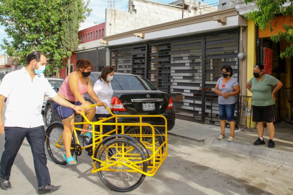 Díaz acudió a los domicilios de las personas en Valle Hermoso, Las Sabinas, Nuevo San Rafael y Fomerrey 31, a quienes les entregó los triciclos que servirán para facilitarles el trabajo que realizan.