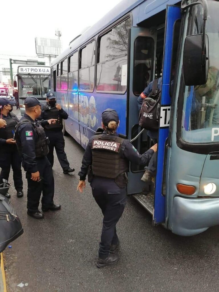 Para prevenir el acoso a las mujeres y evitar robos a usuarios, la Secretaría de Seguridad y Protección a la Ciudadanía de Monterrey realiza el Operativo “Transporte Seguro”.