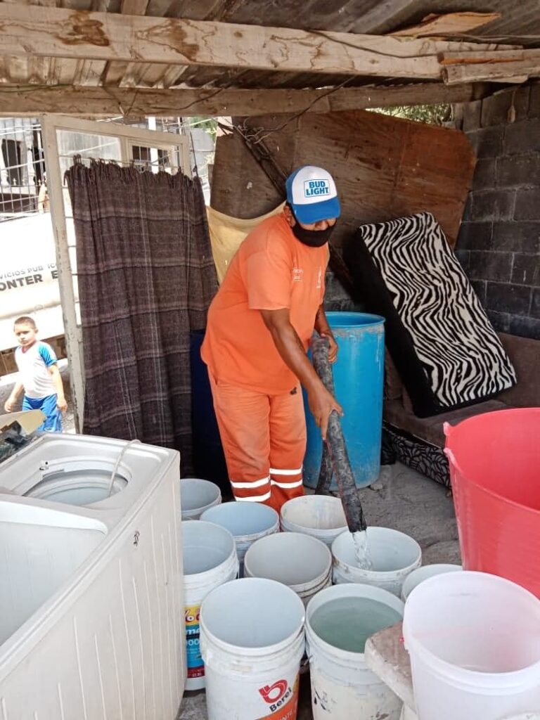 Aunque es responsabilidad de Agua y Drenaje de Monterrey otorgar el servicio de agua potable, el Gobierno Municipal decidió apoyar a las zonas donde la suspensión del servicio se ha prolongado más de 24 horas.