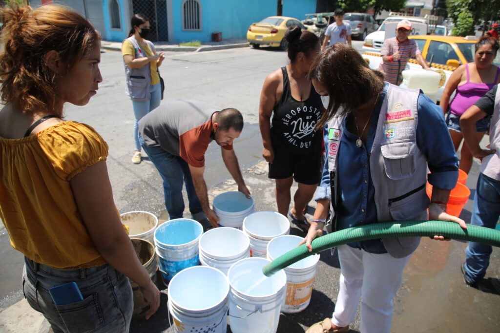 Cristina Díaz destacó que son 500 colonias beneficiadas por medio de pipas coadyuvando con Agua y Drenaje de Monterrey, así como 88 tinacos instalados en zonas de mayor vulnerabilidad para que las familias puedan acudir a abastecerse de agua.